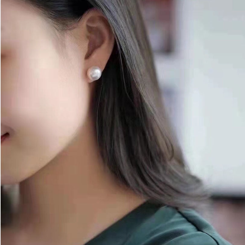 Natural freshwater pearl earrings 8-9 / 9-10mm925 silver ear needle inlaid