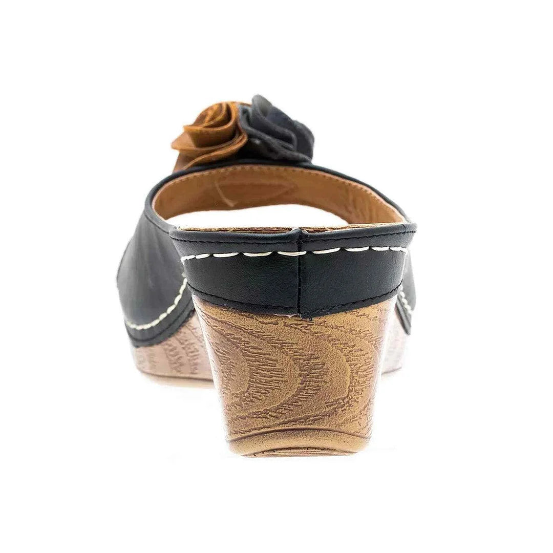 Women's Slip on Slippers Casual Wedge Flowers Sandals Summer Beach Shoes Black 9.5