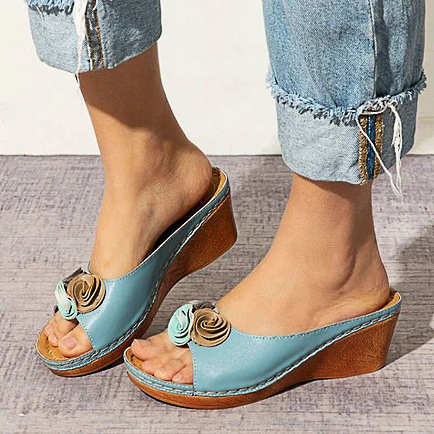 Zoocircle Womens wedge sandals have comfortable uppers and soft insoles that give you the feeling of stepping on clouds. Women slide sandals are made from premium quality synthetic materials, which means no animal are hurt during the production. Comfortable Slip On Design; Elegant & sexy, romantic or comfortable and casual. Anti-skid rubber sole, flexible and slip on style, easy to take care, so comfy to wear. Casual designed women wedge heels for different occasions that can be worn every day. These summer slip on wedges come in a variety of colors! It goes perfectly with jeans, shorts, skirts and everything else this summer.